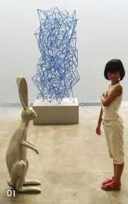 但是前面已经说过,隋建国是一个不断拓展的人。事实上,一种对时间和空间的强烈意识、观照和表达已经成为隋建国近期创作的主要焦点:《时间的形状》是一个每天蘸一层油漆天天都在成长的油漆球;上海浦江新城的《偏离17.5度》是一个涉及空间的公共艺术计划,当时我和他讨论过对“每个立方体高1.2米”的理解,因为如果理解为海拔高度的话,它们的顶面应该是一个球面。