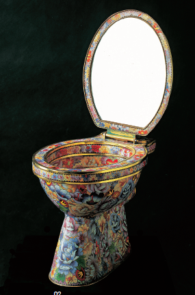 答:我的第一件景泰蓝作品是《对话阿尔普》,1995年我参观了德国波恩一个废弃火车站改建的阿尔普博物馆,因为我太喜欢阿尔普那些性感的果实作品了,它太象容器了,就是颜色太素,给我一种看似追求大雅的乏味感,于是产生了把他的作品干脆改成俗的景泰蓝的想法。1999年我开始着手做,作品出来且比较成功,然后就做了更大的作品“导弹”,我将男性器官和武器以工艺美术的方式凝结在一起;使战争和生命的关系呈现为一种爱的符号,又成功了。我开始相信违规是艺术发展的必经之路,坚信一个艺术家的生活态度决定了他的艺术理由。在这样的认知下我把违规作为恢复家族自信的一种进取的生活态度亮之于众,以我自己的方式夺回幼时被剥夺的继承权及阐述文化传承的理由,是一种自然的必然。
