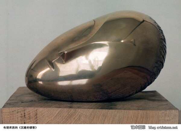 布朗库西是抽象雕塑之父,当然也是现代主义中雕塑领域的代表性人物。他的划时代性使得以后的抽象雕塑家无一不推崇他为教父。布氏主要是通过步步紧逼的简化企图追寻事物的本质,完全成了卵形《沉睡的缪斯》就是他努力的结果。显然他所谓的本质首先是从型的角度,他所谓的本质是物的一般性,或则说物的普遍性。有趣的是他还做过罗丹几天学生。罗丹的雕塑代表当时最为主流的创作意识,那就是社会性的抱负和文学性的描写。在这样一个强势的主流背景之下,布朗库西的状态和雕塑不能不说是前卫和划时代的。布朗库西的现代艺术史地位不用笔者在这里强调。艺术史往往只注意亮点人物,而一堆人为之所做的铺垫性努力往往忽略不计了!